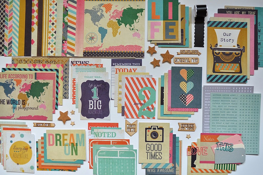 See that Map paper right there on top? Sigh. I love that paper. Most of what I picked is October Afternoon with a bit of Crate Paper thrown in to round it out. I LOVE the colors and it came together pretty quickly with no patterns to try to match up.
